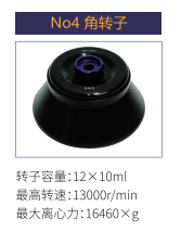No4 | 角轉(zhuǎn)子 | 12x10ml | 13000r/min | 16460xg |